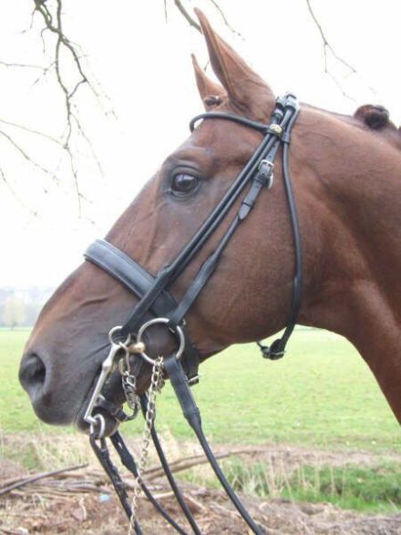 Luxe rond genaaid stang en trens hoofdstel met RVS fournituren en brede aansnoerneusriem.