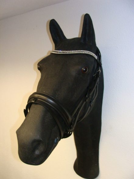 Frontriem is gemaakt van een dubbele boog en in zijn geheel versierd met siersteentjes.