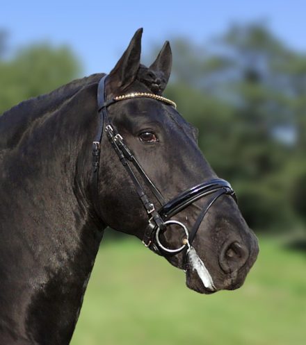 Dit hoofdstel is uitgevoerd in special soft leder, met goldplated fournituren. En zacht gevoerd en terug gesneden kopstuk. Met goud-kleurig Swarovski frontriem